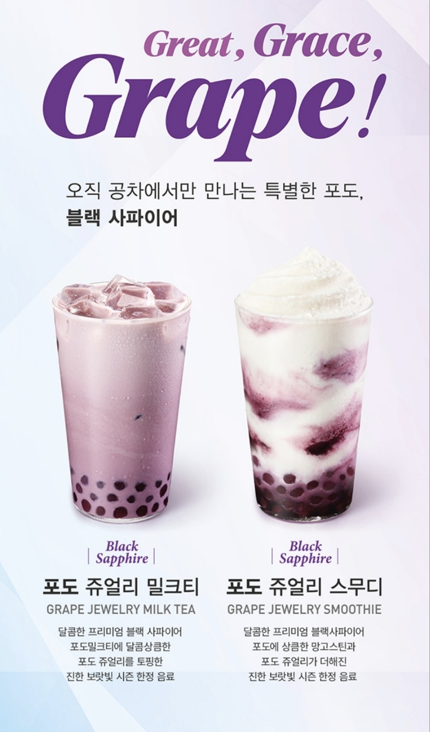 신메뉴 '블랙 사파이어 포도' 음료 3종