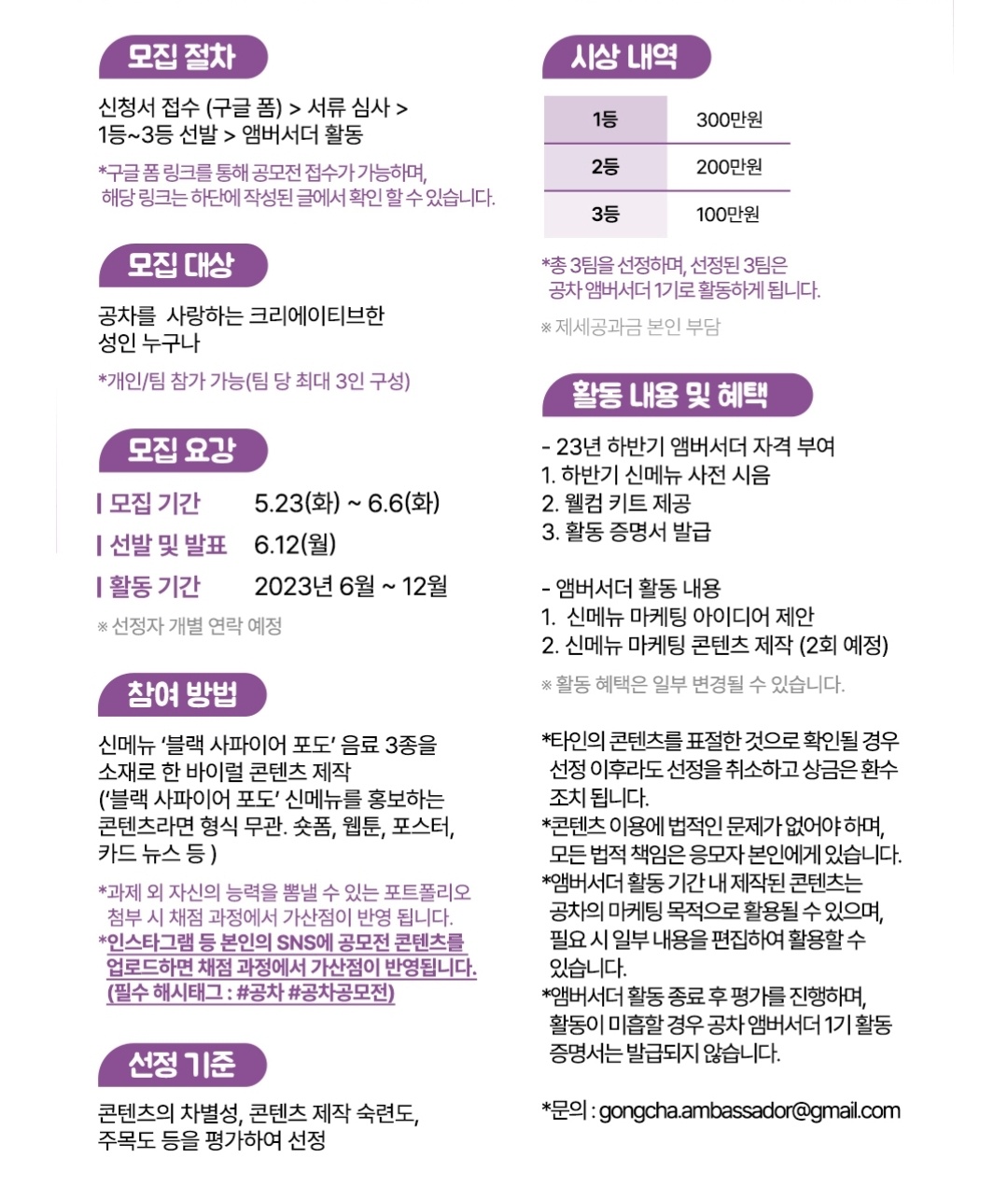 신청서 접수(구글폼) > 서류심사 > 1등~3등 선발 > 엠버서더 활동